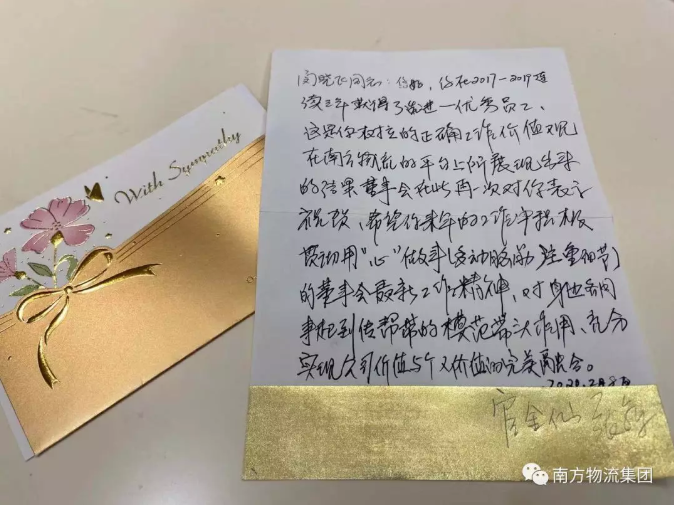 继年底对公司年度先进/优秀个人进行表彰奖励之后,爱体育-中国一站式服务平台又对连续3年获得先进/优秀个人的闵晓飞同志进行了特别奖励——开工大礼包和一封由爱体育-中国一站式服务平台董事会亲笔写的表扬信。第一次收获这样特殊的奖励,闵晓飞表示很暖心,心情很激动,“非常荣幸,感谢公司优良的团队氛围及各位领导、同事的支持肯定与默契合作,今后我将在工作中投入更高的热忱,更加努力地完成公司的各项任务。”